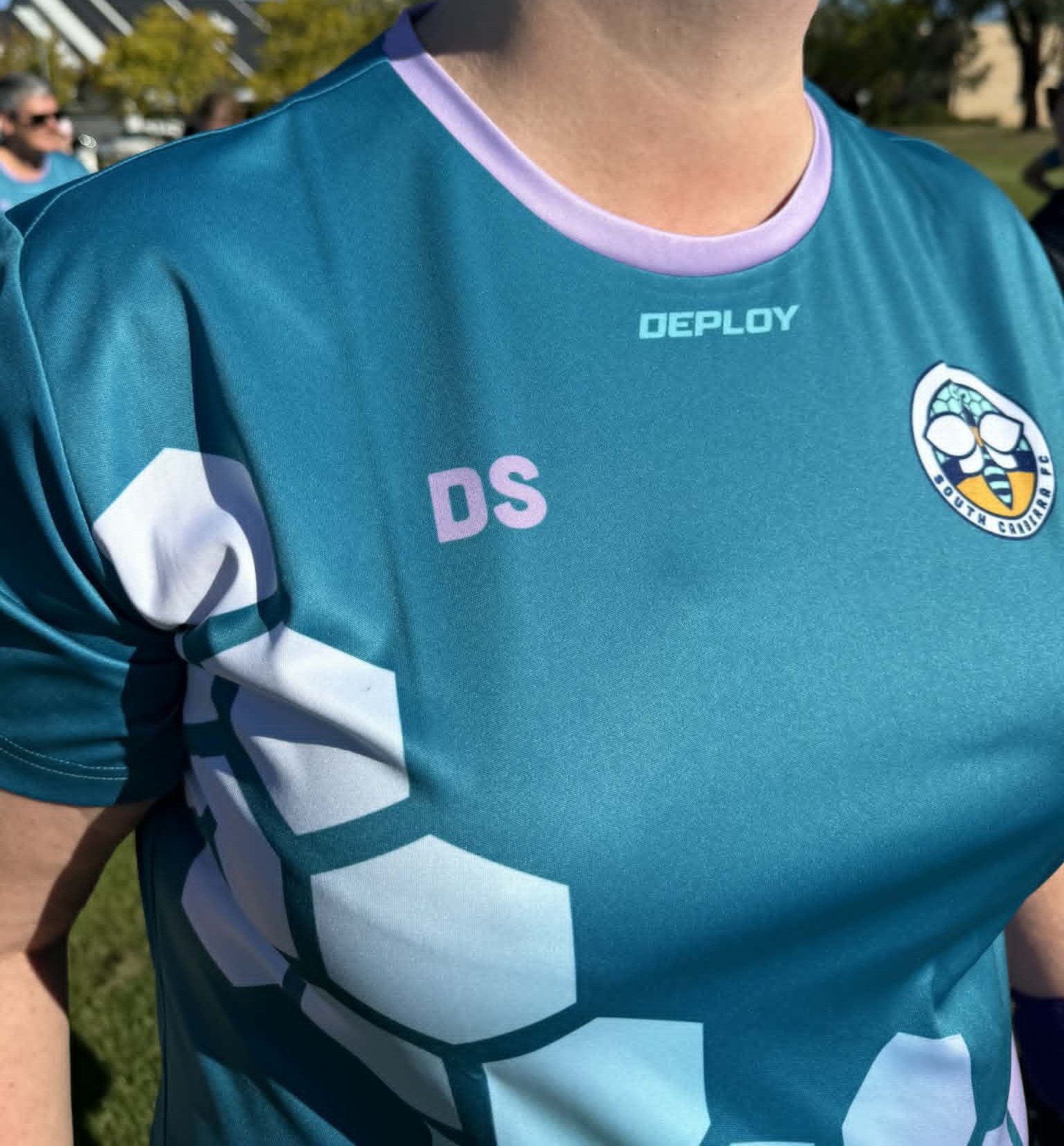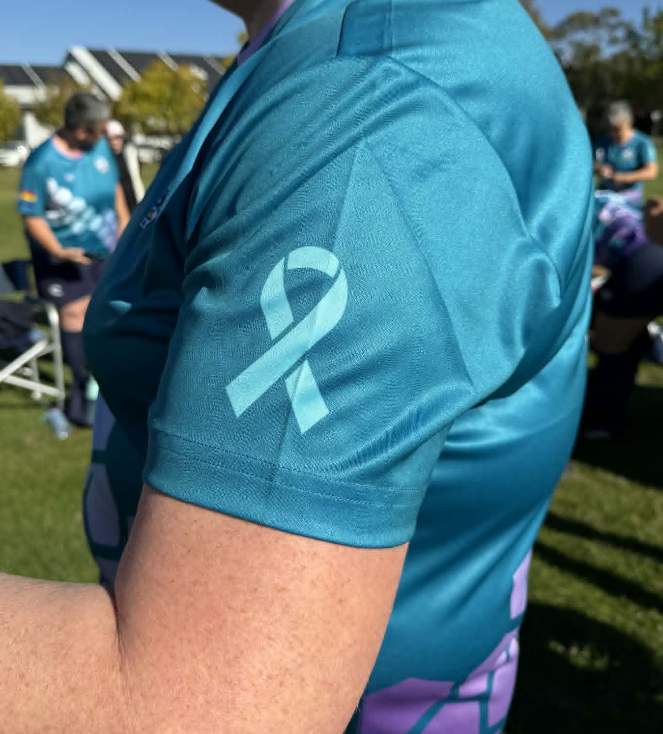 2026 teal training shirt in support of Ovarian Cancer Research.