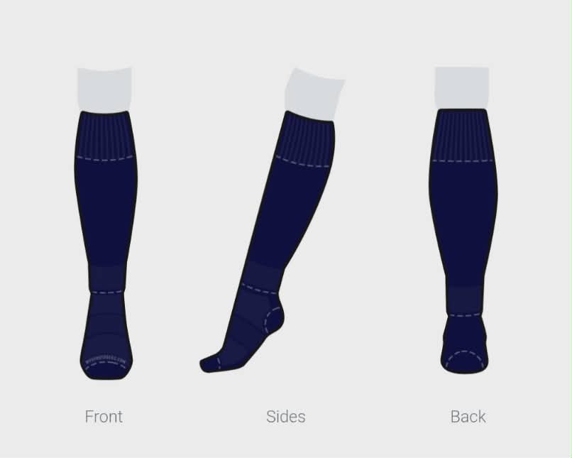 Navy blue, knee high, game day socks printed with the SCFC logo.